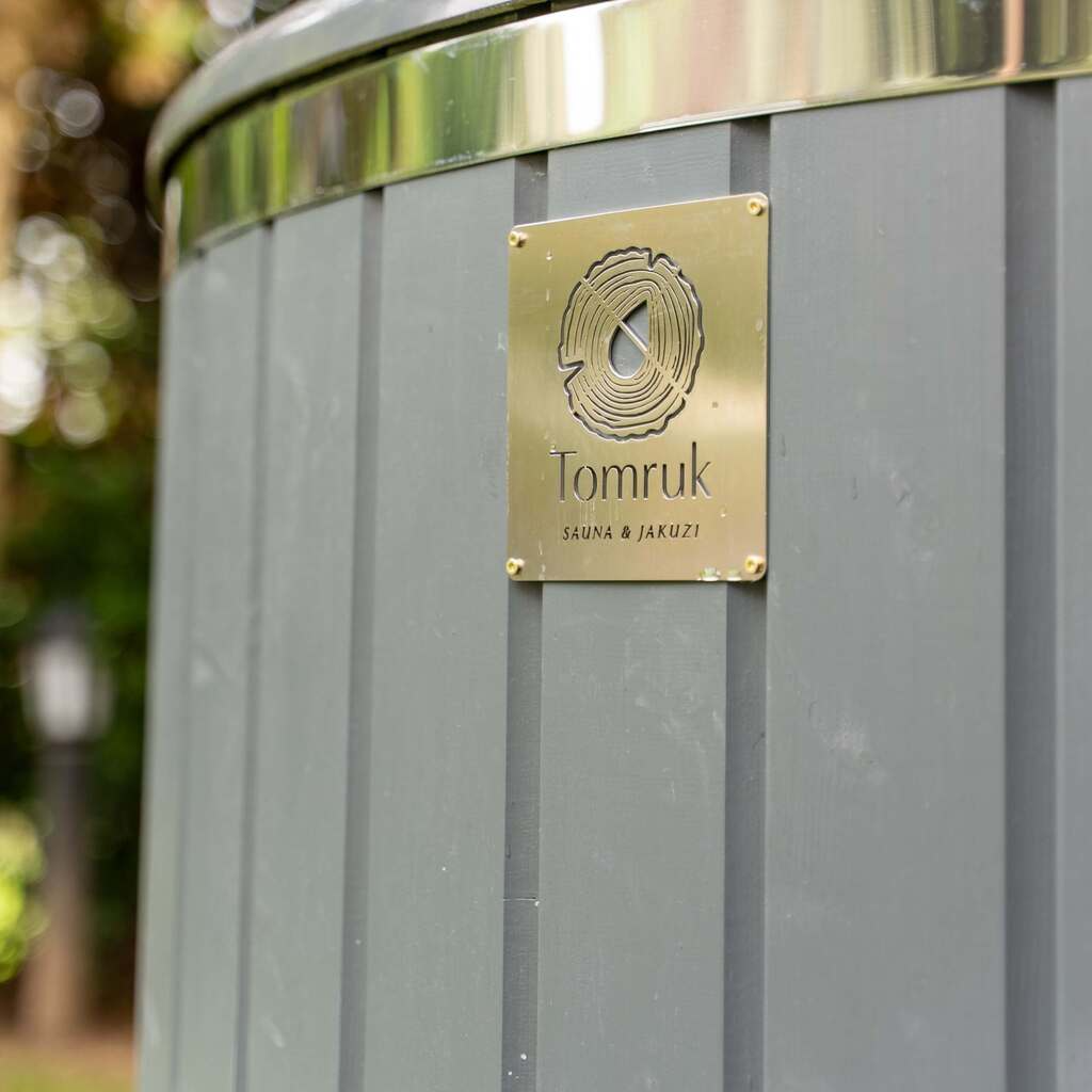 İskandinav çamının sıcak dokusu ve paslanmaz çelik logo detayı. Zorlu hava koşullarına, neme ve güneşe karşı ekstra dirençli, bakım gerektirmeyen dış gövde.