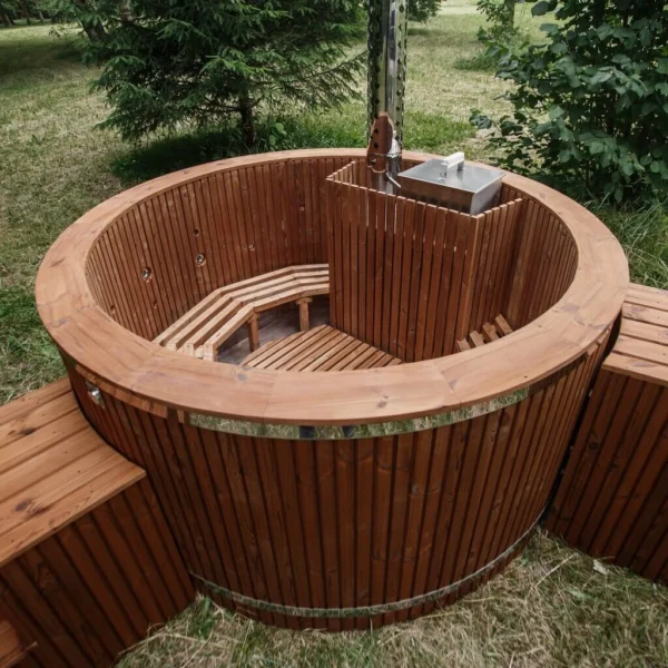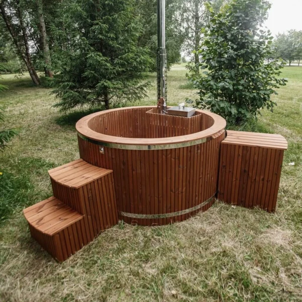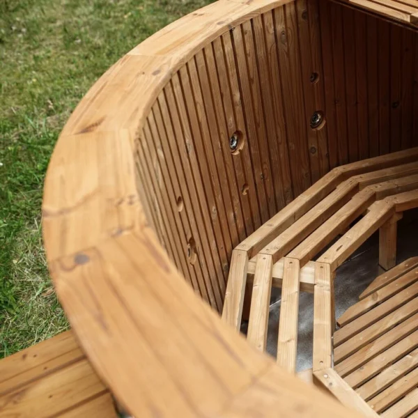 Tomruk Jakuzi, rustik görünümüyle farklı bir atmosfer yaratır. Ahşabın doğal sıcaklığıyla huzur verir, modern çizgilerle şıklık katar.