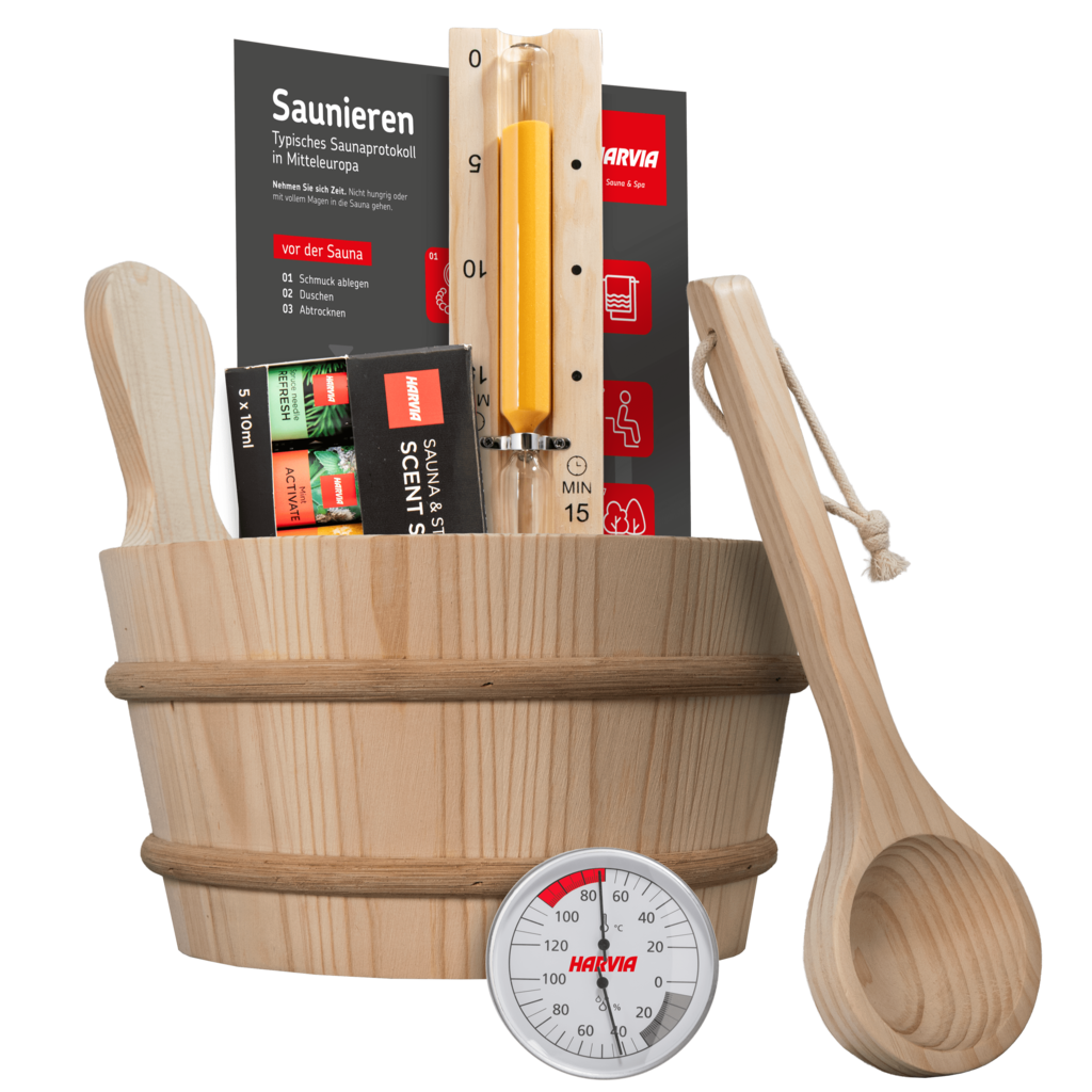 En kaliteli aksesuarlar Sauna deneyiminizi tamamlayıcı etkiye sahiptir. Çeşitli doğal sauna yağları, su kovası ve saçlarınızın yanmasını önleyen sauna şapkaları ile birlikte sınırsız bir deneyim sizi bekliyor.