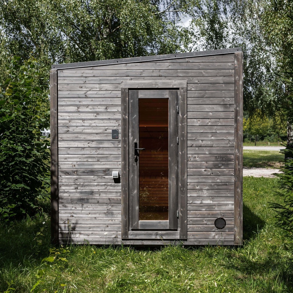 Aura Sauna, isteğe özel tam ahşap çatı.